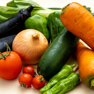 ナス・スイカ・枝豆・かぼちゃ・きゅうり・トマト・ミニトマト・ピーマン・ネギ・里芋、いんげん